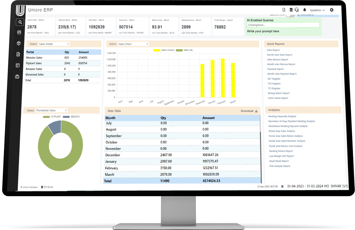 UnicroERP stands out in Custom ERP Software Development services, specializing in creating robust solutions tailored to your business's specific requirements. Our experienced team utilizes cutting-edge technologies to craft efficient, scalable, and customizable ERP systems. With a dedicated focus on enhancing productivity and optimizing processes, UnicroERP's ERP development services guarantee seamless integration, real-time data management, and comprehensive functionality.